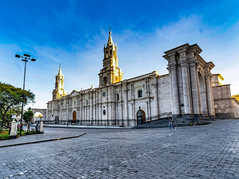 Continuaremos hacia Yanahuara, donde visitaremos la Plaza Principal con una vista espectacular de la ciudad y sus volcanes. Posteriormente, nos dirigiremos al mercado San Camilo para una experiencia auténtica y, después de la visita, nos trasladaremos a la Plaza de Armas de Arequipa. Aquí, el guía ofrecerá información sobre la historia y la arquitectura que rodea la plaza.