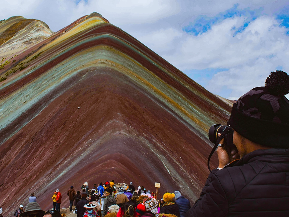hermosas quebradas y veremos picos nevados, al llegar al mirador de vinikunka o Montaña de Colores (5080 msnm.) nuestro guía nos dará una explicación sobre la orografía, ecosistema y color de la montaña, también podremos aprovechar el momento para observar la cadena montañosa de vinikunka (5020 m), tomar las fotos del recuerdo y admirar el hermoso paisaje.